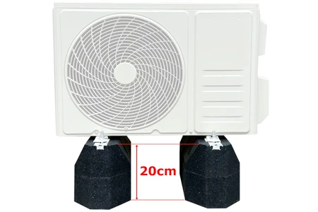 Podstawa gumowa antywibracyjna z podwyższeniem o długości 600 mm to niezawodne rozwiązanie do stabilnego montażu urządzeń takich jak klimatyzatory, agregaty chłodnicze czy pompy ciepła. Wykonana z prasowanego granulatu gumowego, skutecznie tłumi wibracje, co przekłada się na cichszą i bardziej efektywną pracę urządzeń. Wysokość zestawu po złożeniu wynosi 20 cm, dzięki czemu nie ma potrzeby stosowania podmurówek, bloczków itp. Możliwe jest piętrowanie bloczków – dla zachowania stabilności zalecana maksymalna wysokość to 40 cm.